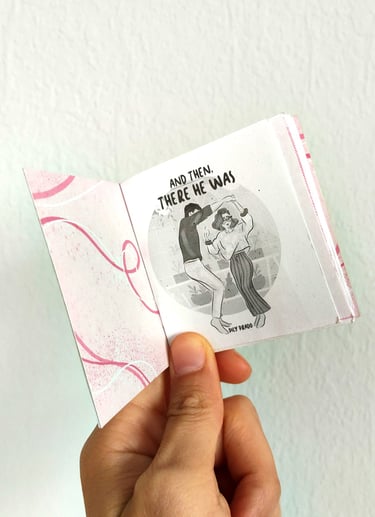 Is an original illustrated book I created for my partner as an anniversary gift. Itās a personal project that tells the story of how we met and everything that came after.