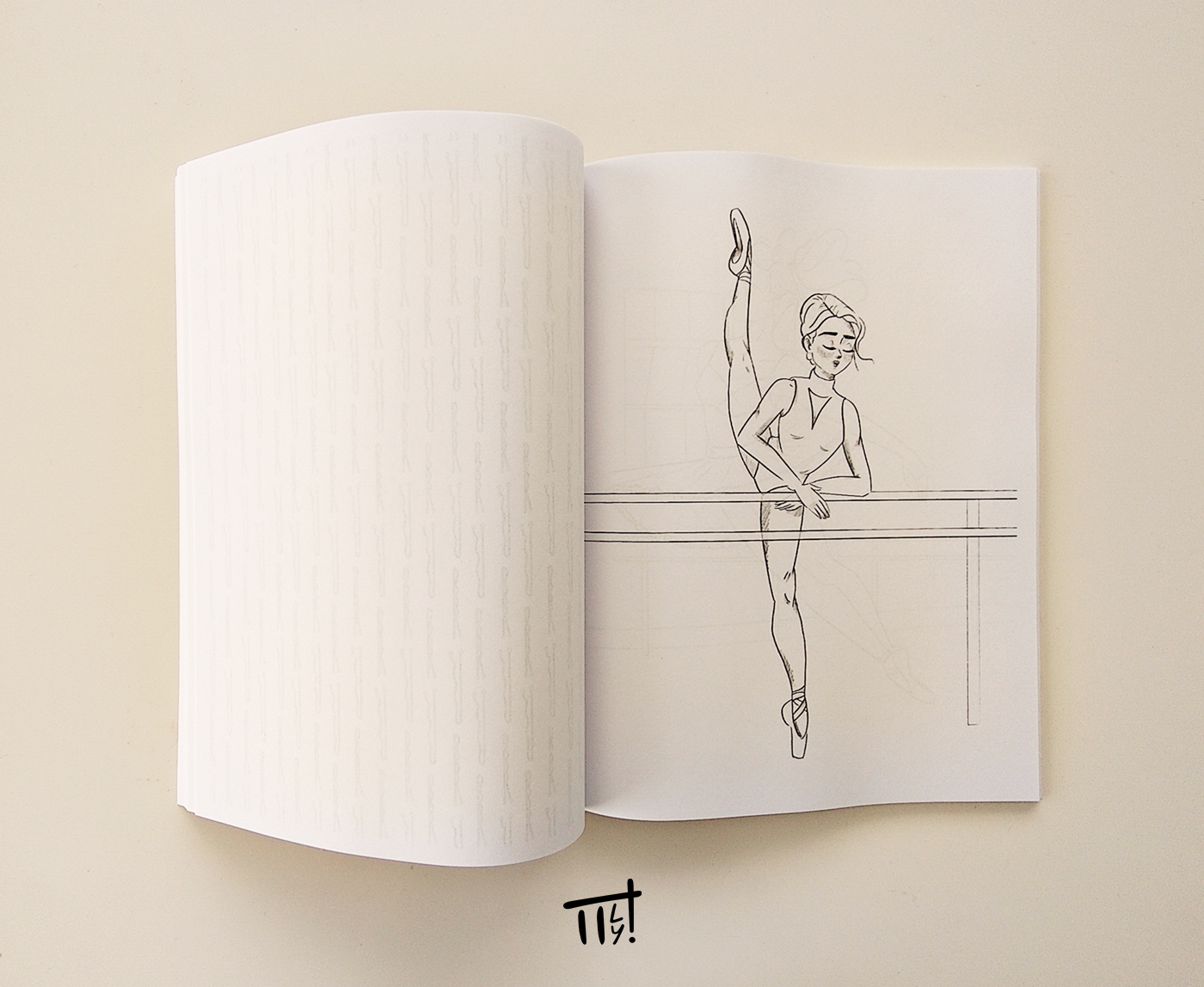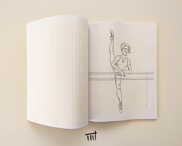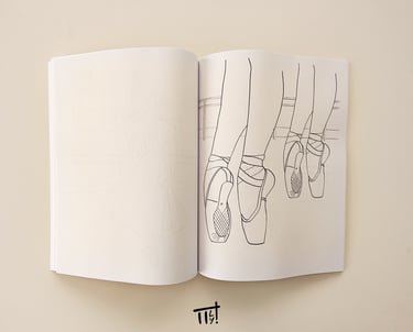 It features more than 45 original hand-drawn illustrations ballerinas, pointe shoes, and small details that remind me of dance classes.