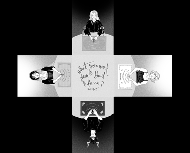 What if thereās a girl playing with a Ouija board, and you could see the same moment, the same table, but from different astral planes?