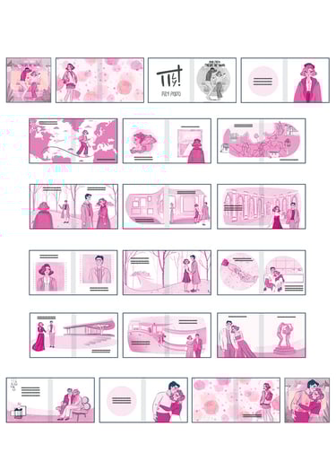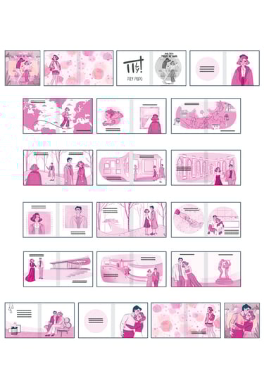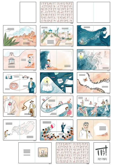 Is an original illustrated book I created for my partner as an anniversary gift. It’s a personal project that tells the story of how we met and everything that came after.